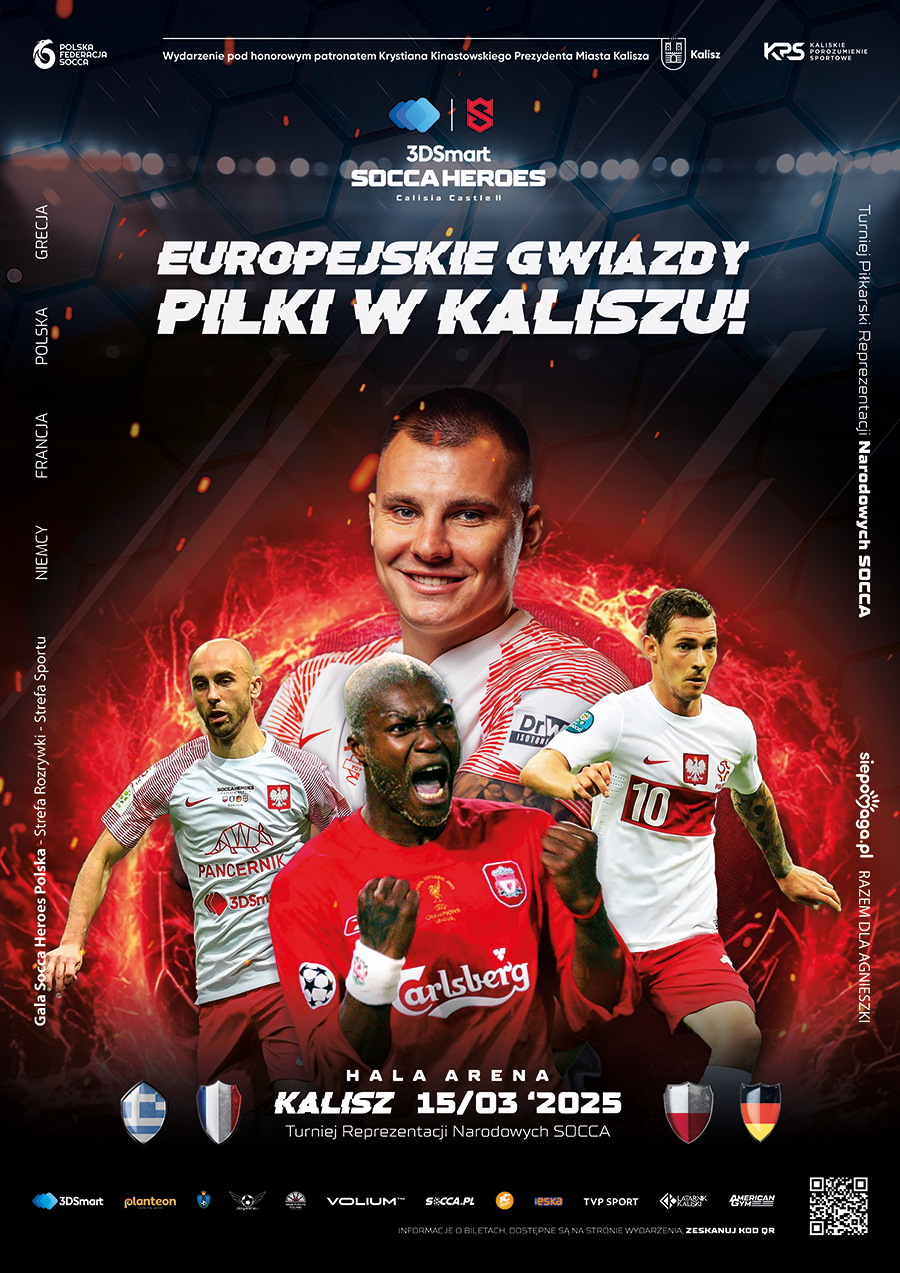 To coś więcej niż zwykły turniej. Socca Heroes Calisia Castle to widowisko, które łączy dynamiczną formułę piłki sześcioosobowej z obecnością prawdziwych gwiazd futbolu. Na boisku zobaczymy legendy światowej piłki nożnej, w tym Djibrila Cissé, Ludovica Obraniaka i Adriana Mierzejewskiego, a także najlepszych zawodników socca – elitarnej odmiany piłki 6-a-side.